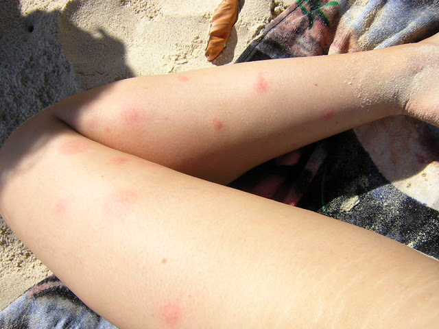 The bugs keep biting me. Darn my sweet, delicious blood. I have a huge bug bite on the back of my leg and it ITCHES! I even have bug bites on my feet. My grandpa sees the bite marks and makes me put cream on them, but he forgets if I already put cream on, so he insists that I put cream on over and over and over again.