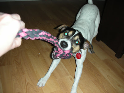 As an added bonus, since Pica cannot get much traction on this floor, she slides excitedly into the wall, the door, the fridge, (etc, etc!) whenever we come home.