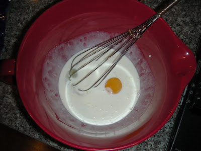 Ooh, look at all this tasty cream. The next time I take a photo like this, I'm totally going to make two egg yolk eyes staring eerily out from the bowl.
