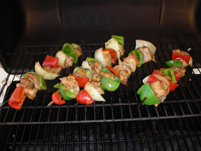 Biscuit has been enjoying the weather too, but she's taking a break to beg for scraps. Darn, if only dogs liked chicken kabobs. Oh well, more for us!