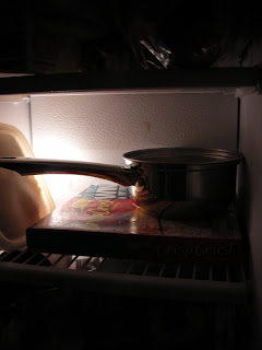 Once the milk was thoroughly scalded, (pfft!) it was time to cool it down.