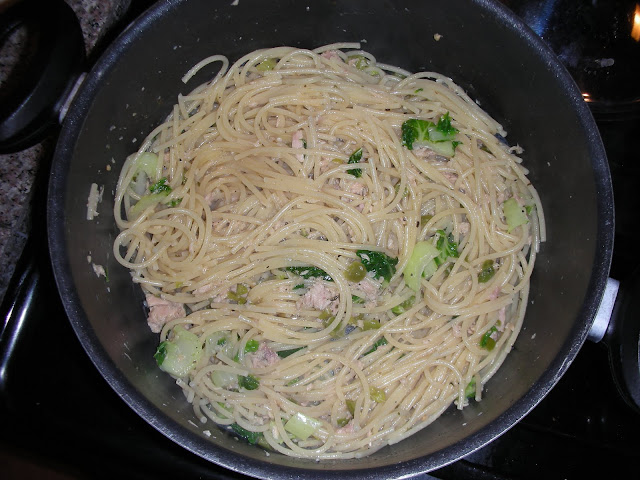 - Add tuna mixture to spaghetti and, if desired, sprinkle with lemon juice