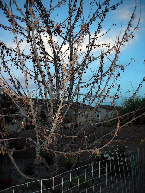 One day, Sexy Nerd noticed that the leaves seemed to be drying up. Here is that exact same cherry tree a little over 2 weeks later: