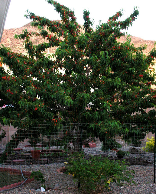 Do you know where I'm going with this? If you have a cherry tree, you may not want to finish reading this post. It gets pretty scary! Here is 1 of our cherry trees earlier this summer:
