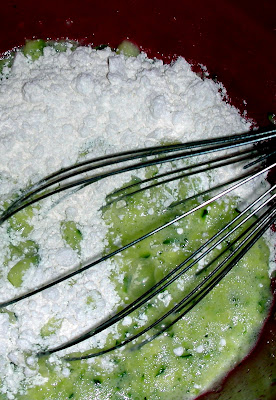 Coarsely grate 1 zucchini. There is no need to peel it.