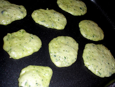Drop spoonfuls onto a hot, nonstick pan. Cover.