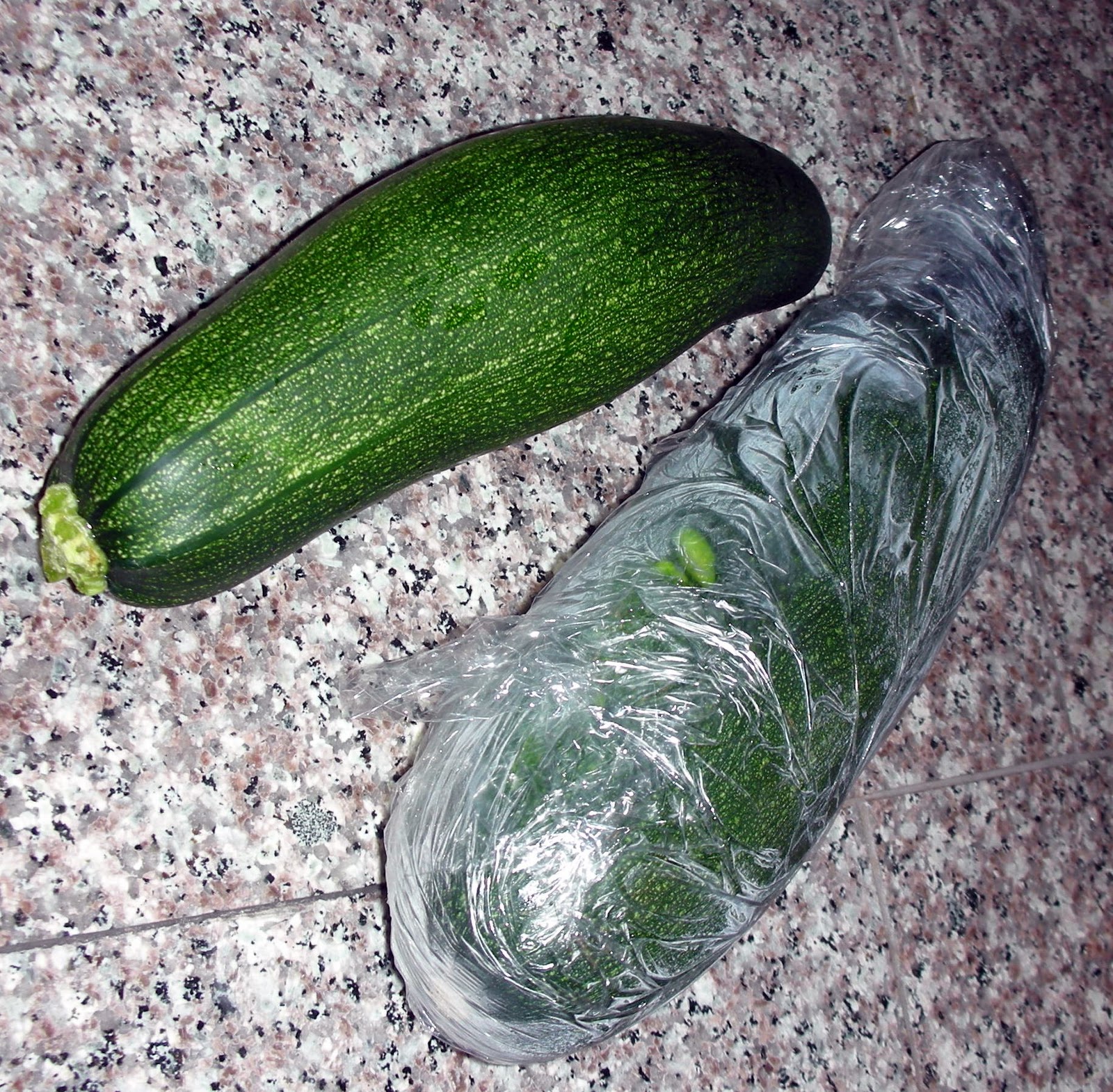 Why he wrapped the larger zucchini in plastic is anyone's guess.