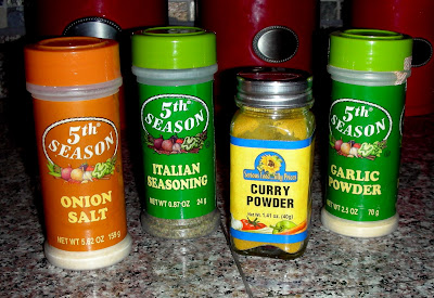 Mix in a pinch of onion salt, a dash of garlic powder, and a generous sprinkling each of curry powder and italian seasoning. I love curry powder so I tend to add at least a tablespoon. Sexy Nerd, however, is not much of a curry powder fan.