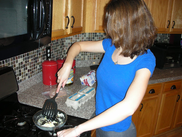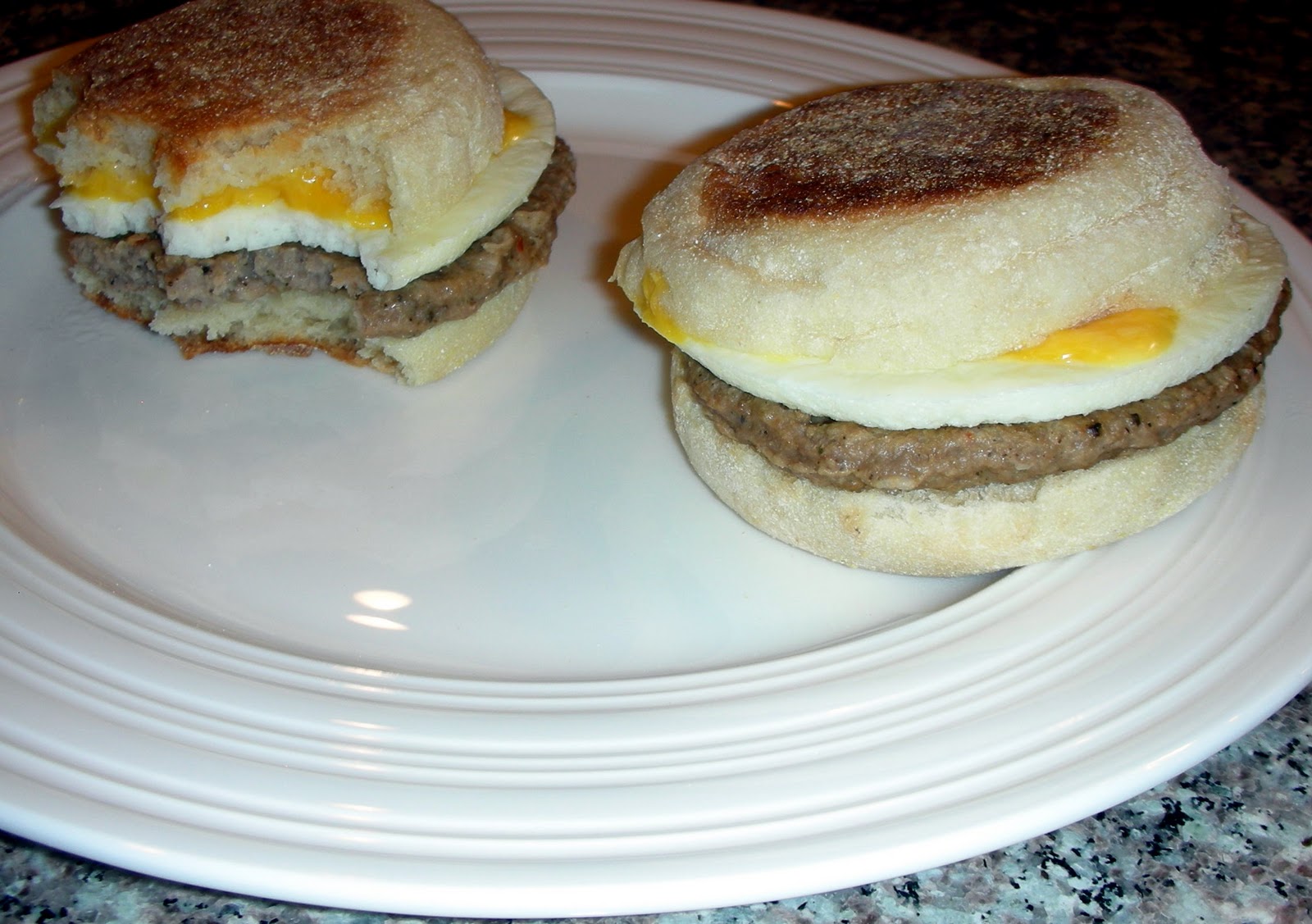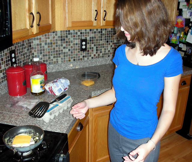 Healthy or not, I wasn't convinced that the Jimmy Dean D-Lights would taste as good as fresh food. I challenged Sexy Nerd to a battle of the breakfast sandwiches!