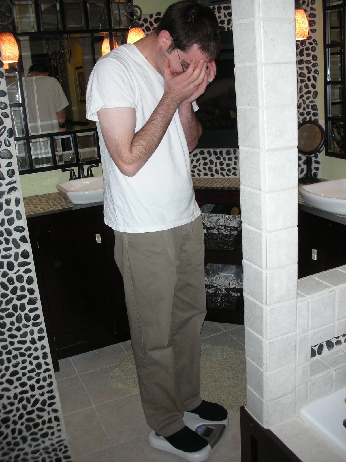 After his most recent, week-long trip away from home, I decided to play the role of pesky wife and insisted that he step on the scale.