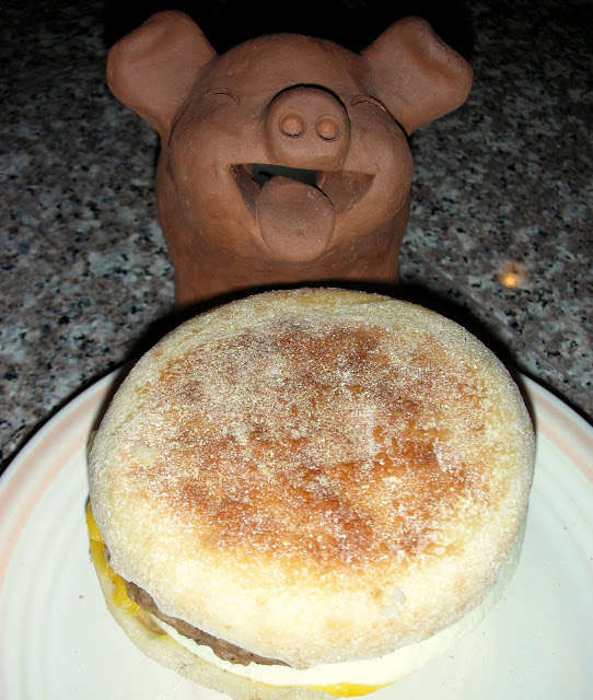 Kitchen Pig isn't one to wait around all day to eat. Jimmy Dean is his kind of breakfast.