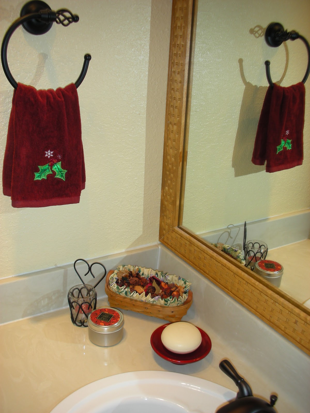Throw in a holiday hand towel and my Christmas decorating is complete.