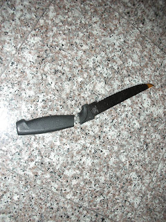 On a side note, has anyone seen any bargains on knives lately? I think we have plenty - an entire drawer full of ones just like this! - but I suspect Sexy Nerd is going to throw them out.