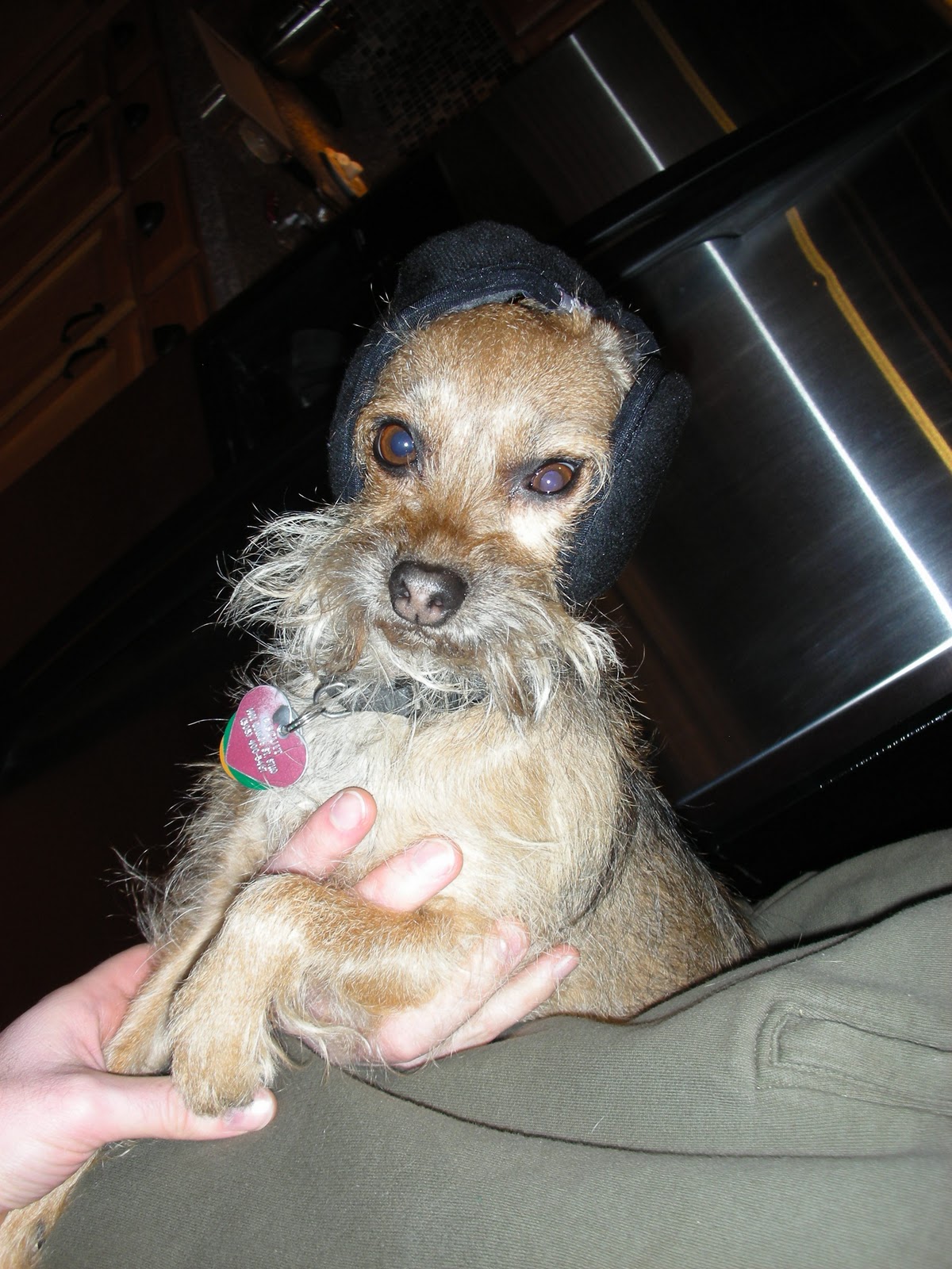 We're cheap frugal and keep our house at a toasty 50F. She probably wishes she could wear earmuffs all the time!