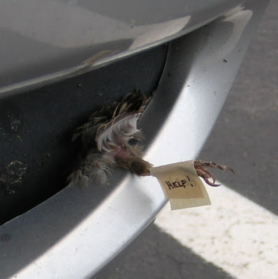 Many years ago, Sexy Nerd and I took a little summer road trip to visit his family in Colorado. He was driving, I was sleeping, and all of a sudden we heard a *THUD!* It's not exactly the kind of sound you want to encounter when going 75mph, but nothing seemed to be wrong with the car and we didn't see anything in the rearview mirror. We continued down the road.
