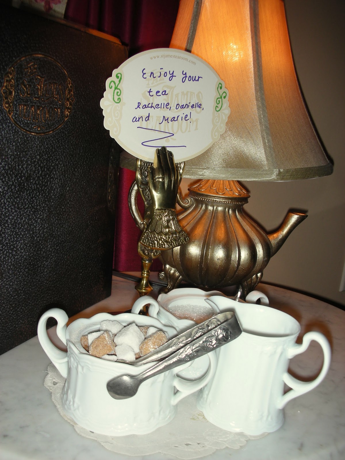 My reputation at work seems to be that I am the girl who always gets lost, so I was relieved when my tea party co-planner offered to drive me. Thank goodness - I had no idea where we were! Where is the St. James tearoom? I can't tell you.