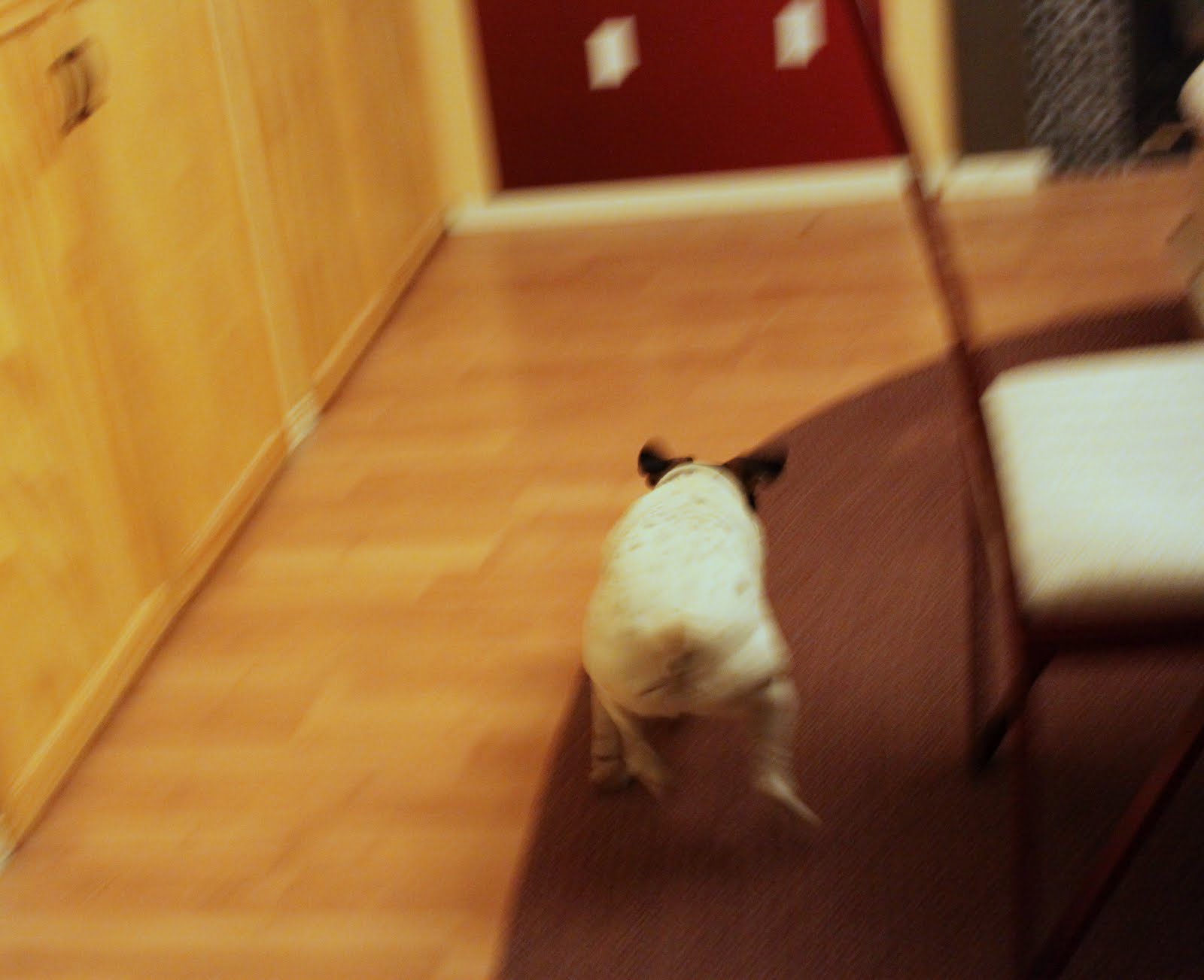 Keep in mind that this was taken in the "action" setting of my Canon Rebel T1i camera, which claims to capture 3.4 photos per second. Photographing a dog *inside* the house should be no problem at all, right?