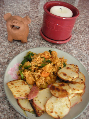 Ta da! With the added spinach and coconut milk, as well as some homemade "french fries", this was actually a pretty tasty meal.