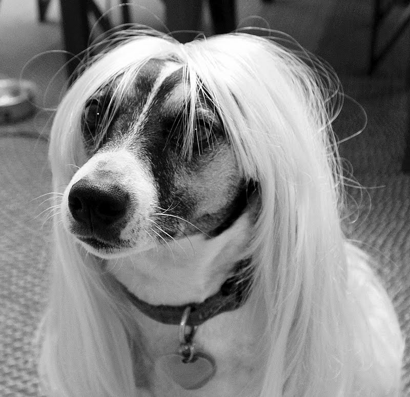 Who else thinks Biscuit looks even better as a dog wearing a wig?