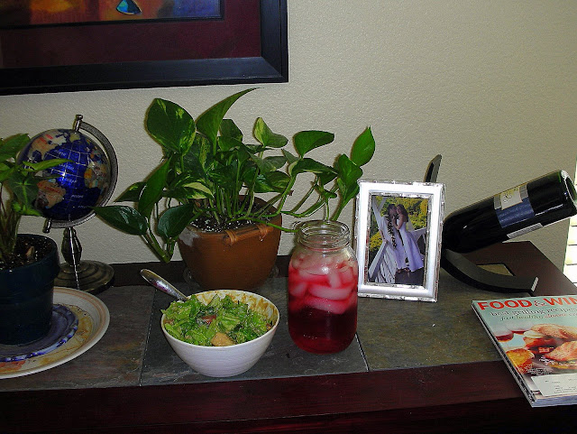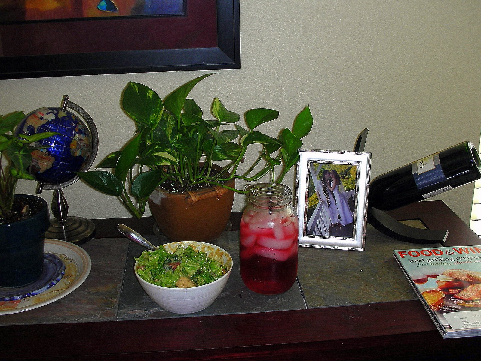There's a crazy wildfire burning and we're getting the smoke and even some of the ash here in Albuquerque. Sexy Nerd and I have been stuck inside every night for the past week and have been advised not to run our swamp cooler or open our windows. It is HOT! To compensate, we're being extra lazy lately. Ahh, what could be more relaxing than kicking back with a big glass of iced tea, a cool salad, and a magazine?