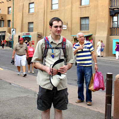 Shopping at the Santa Fe Plaza only seemed to create a Sleepy Grump. "We rode the Rail Runner train here," he was quick to point out. "You can't get any of this junk home. It's all overpriced anyway. The music in this store sounds like lasers. It's stupid."