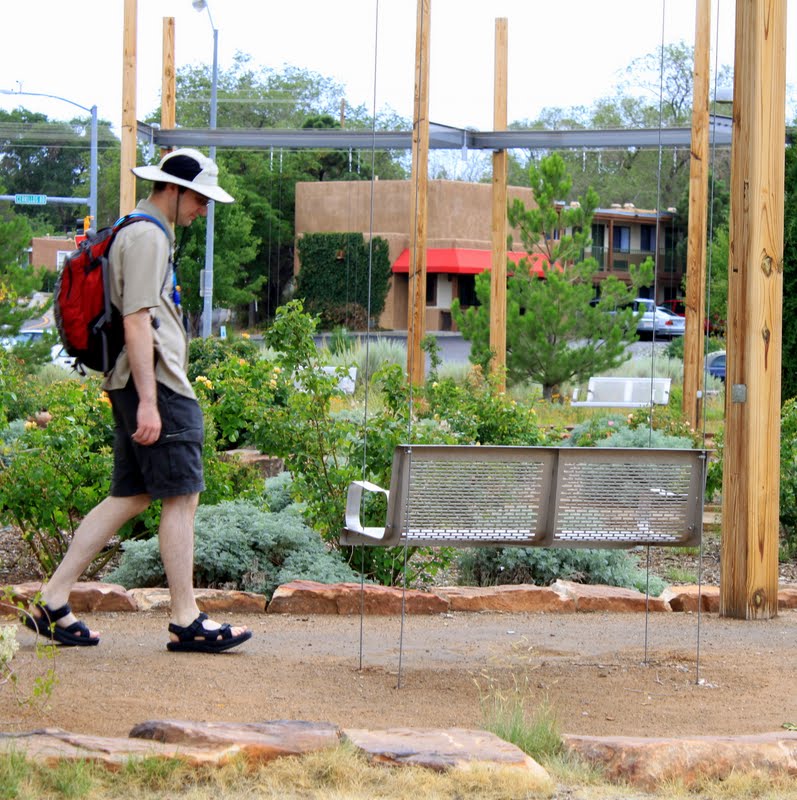 Of all the fun things to do in Santa Fe, it had been a floating bench that turned his frown upside down!