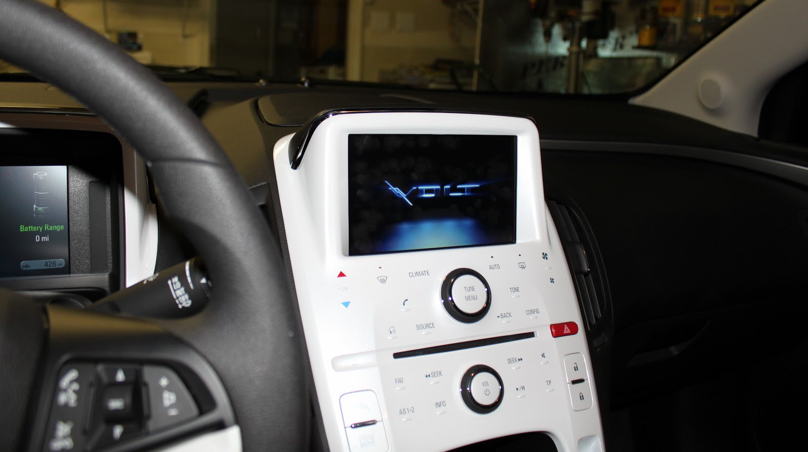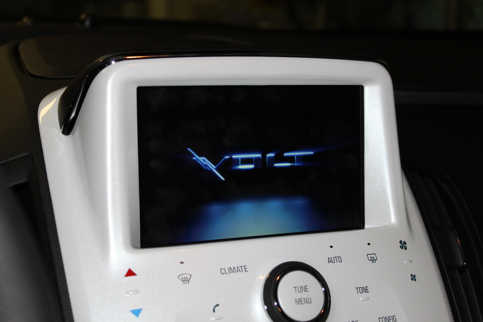 When you get into the driver's seat, the Volt plays a tune and welcoming graphic to greet you.