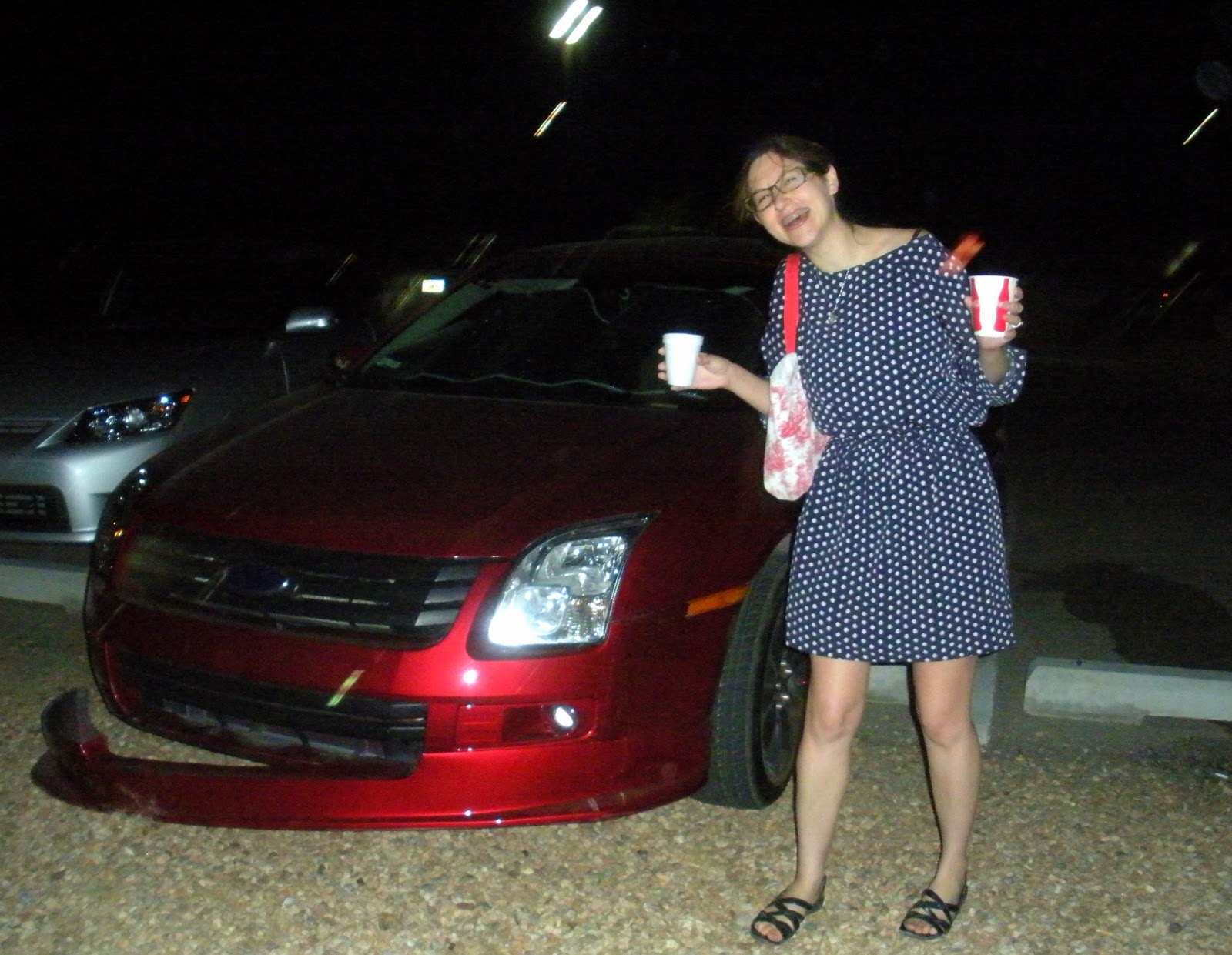 My mom took this photo of me. I was going for a look of amusement, but didn't quite nail it. I blame my braces for giving me a toothless, old lady smile.