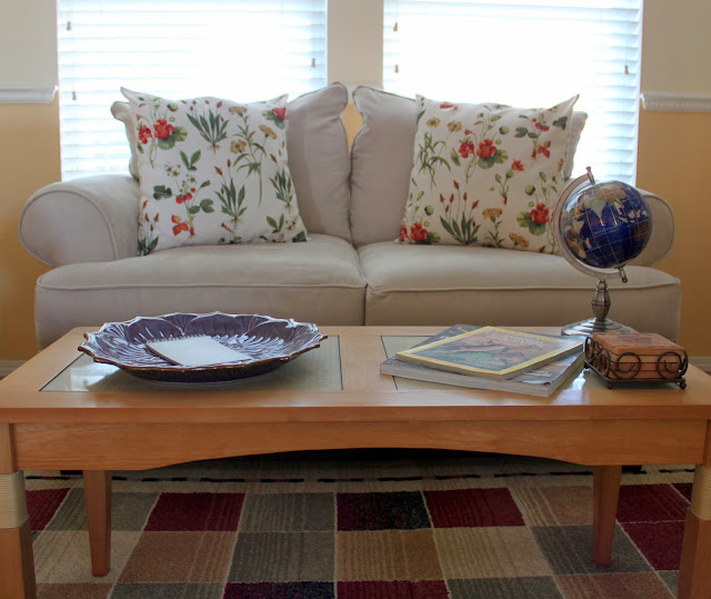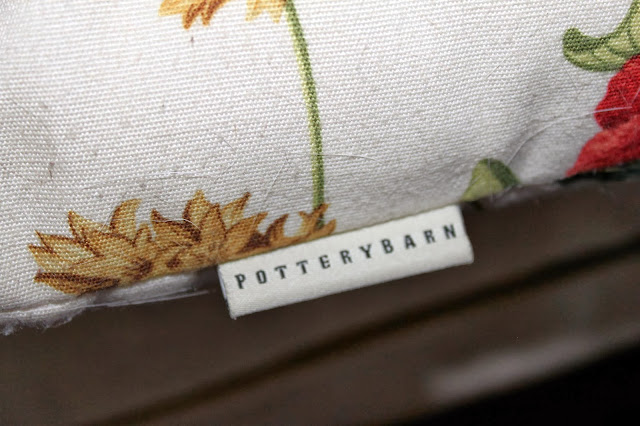 Last year, I found some beautiful Pottery Barn cushions on clearance. They were perfect for our living room.