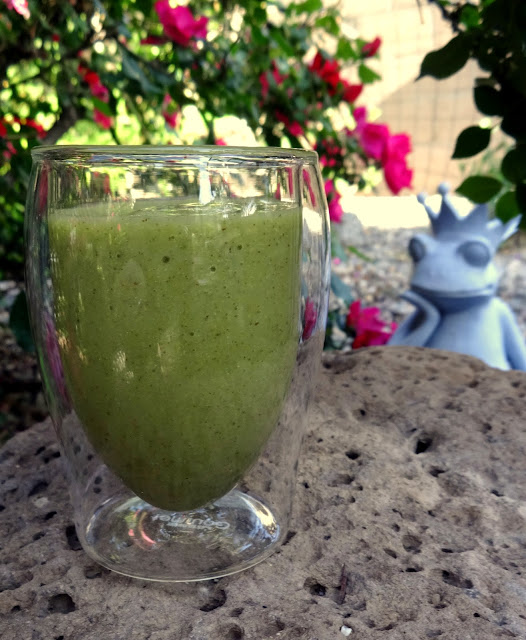 Note my dapper Frog Prince admiring its green loveliness. He's pondering why I didn't name this recipe The Frog.