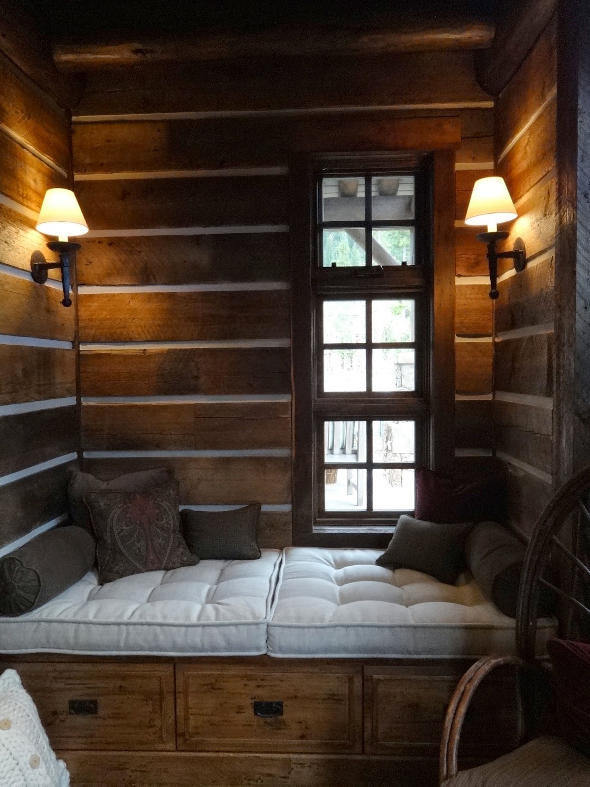 Tip 14: Every home needs a window seat. This rustic one is like your own, personal log cabin.