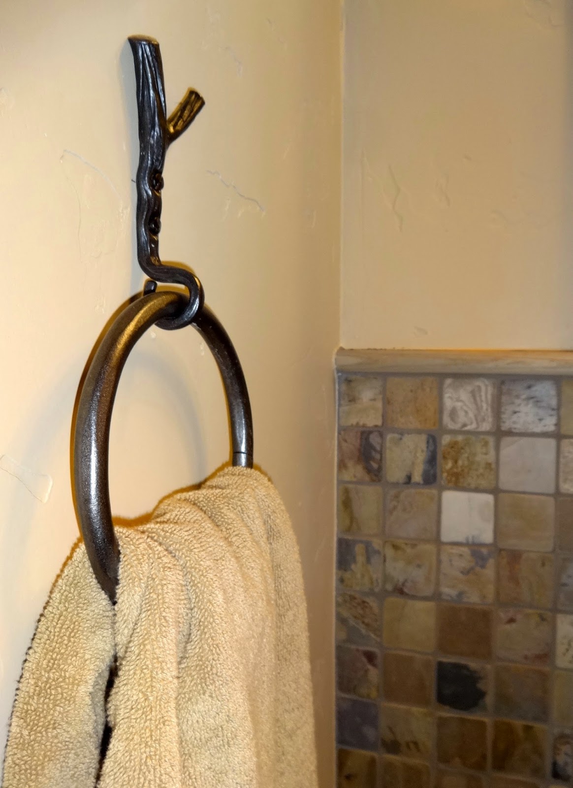 Tip 12: When trying to bring the outdoors in, every detail counts. This little twig adds so much more character to the room than if the homeowners had gone with a plain towel bar.