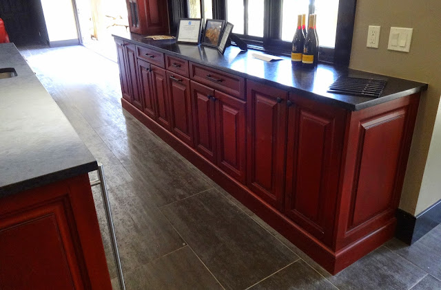 Tip 7: Stained red cabinets actually look really nice in person. I never would have considered them for our new home before, but these had so much charm. They seemed more like a quality piece of furniture than everyday cabinets.