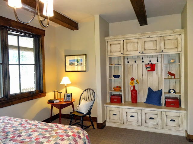 Tip 15: Rather than rely on a closet in your guest bedroom, which most guests will never open, why not borrow an idea from the mudroom? This provides a handy place to sit and tie shoes, hang coats and purses, and store a suitcase out of the way.