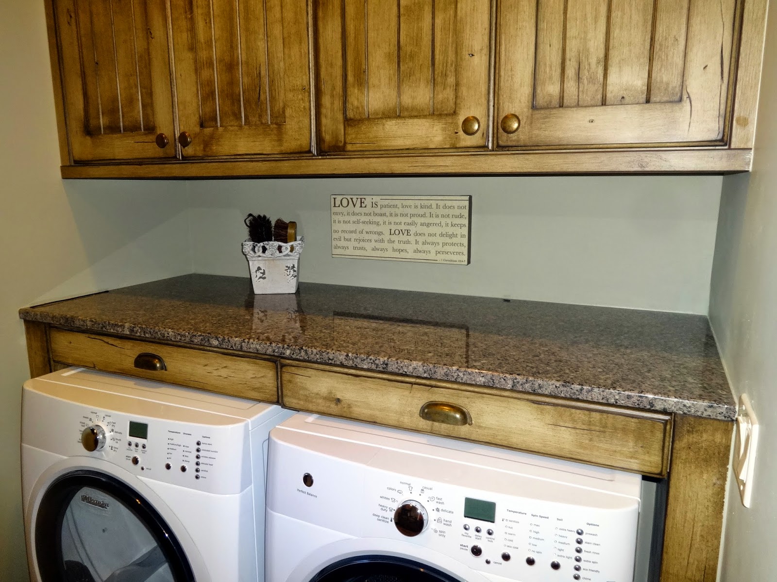 Tip 8: Placing a countertop above your washer/dryer is old news, but have you ever considered including drawers? They're the perfect place to stash dryer sheets and detergent pods.