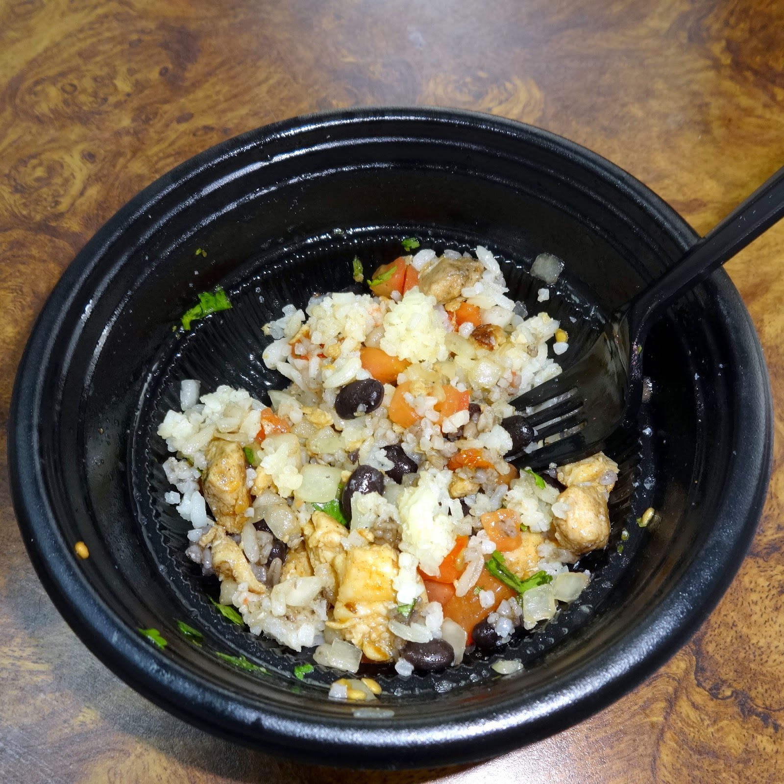 Now, back to my lunch. I ordered the Pollo Asado Fresca Bowl, which included seasoned rice, grilled chicken, black beans, onions, pico de gallo, and, best of all, lots and lots of cilantro. If you're not a cilantro fan, be sure to order a different flavor Fresca Bowl. I was in cilantro heaven!
