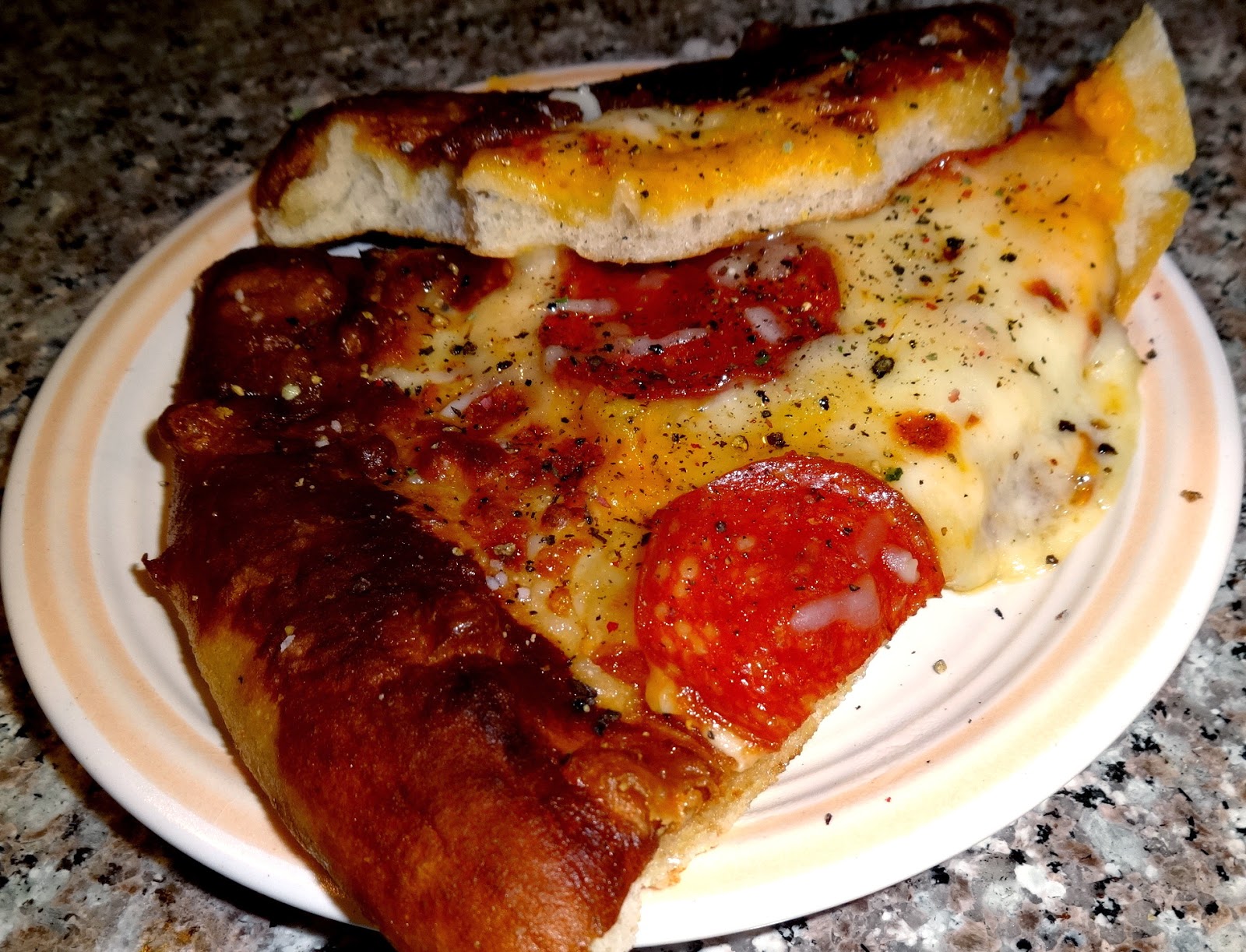 For breakfast this morning, I enjoyed a few leftover slices of Little Caesar's Pretzel Crust Pepperoni Pizza (so good!)