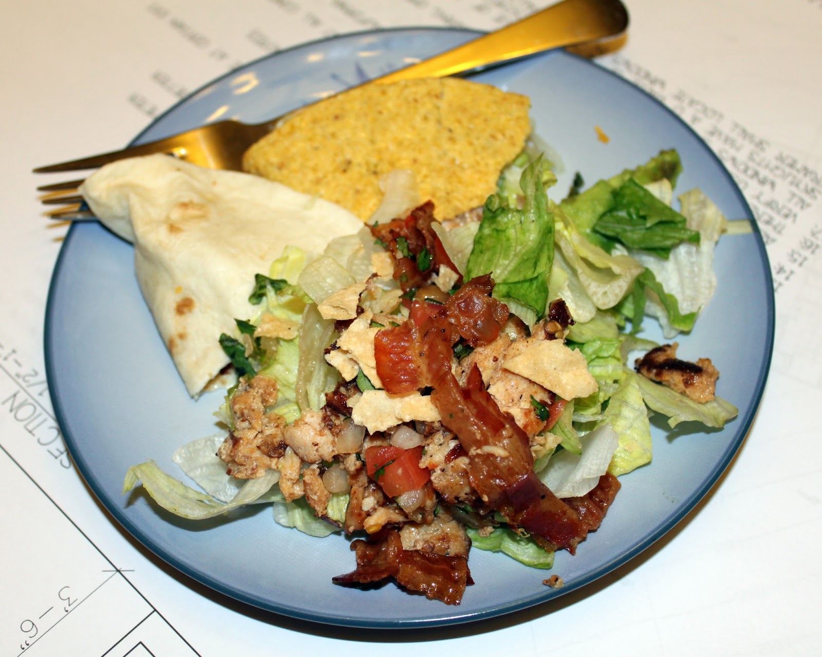 Chicken Bacon Avocado Salad, including a side of tortilla chips. That was a nice surprise! There was supposed to be a side of Cilantro Pepita Ranch, but my Albuquerque Del Taco forgot to include it. You'd think I'd have learned to check my order after the Bacon Quesadilla debacle, but sadly no.