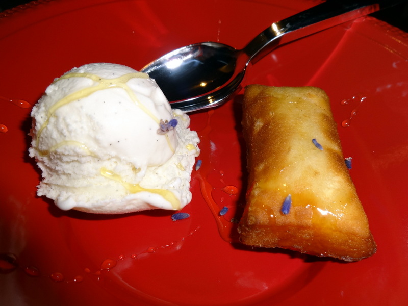 Homemade sopapillas with lavender honey a la mode featuring lactose-free ice cream