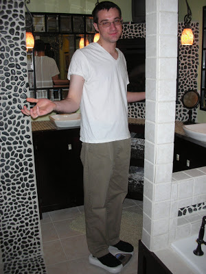 Blogging this, I just realized Sexy Nerd pinned his name tag to the middle of his shirt instead of his pocket. He's such a goofball.
