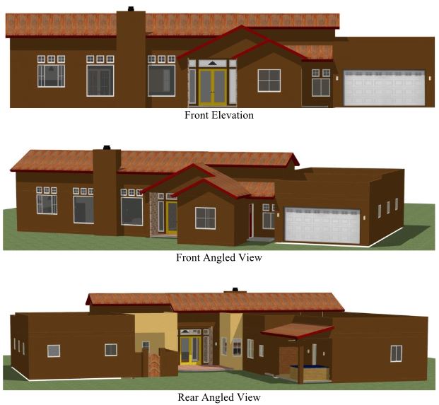 Our house is going to look just like this (pending HOA-approval) but with a few nifty details Sexy Nerd's computer program couldn't show - yellow shutters around the big square window and a white (or possibly red...no, definitely white...I think...) arbor above the garage door. We're going to plant Spanish Brooms (yellow flower explosions!) in the front yard, which should accentuate the front door nicely. Sexy Nerd fought me on adding windows above the 8' front doors and the sets of 3 square windows above the kitchen and living room windows, insisting that the windows were gargantuanly tall without any extra help. I disagreed.