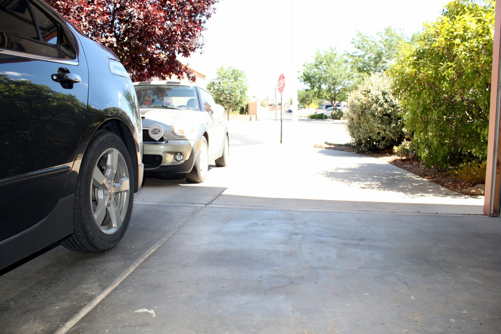 Not ready to give up, I decided to Austin Powers my car dilemma and finagle the Volt around the Mini Cooper, however many times it took to pull forward and back up. I moved all the obstacles from the garage. There was plenty of space! Surely, I would not damage both of our cars simultaneously. Surely, the neighbors would not all have a good laugh. Surely.