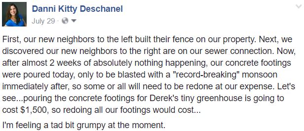 A million weeks in and all we have to show for it is a pile of dirt. Shouldn't we be living in the house by now? Things were progressing nicely and the crew dug the trenches to pour our concrete footings.