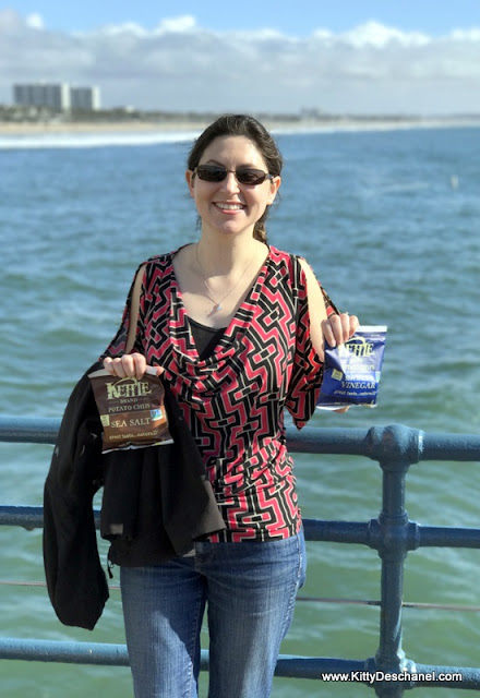 I'd read parking is expensive and difficult to come across, but we found an affordable spot right away. Even better, within our first few minutes at the pier, we were each given two free bags of Kettle potato chips! I love California.