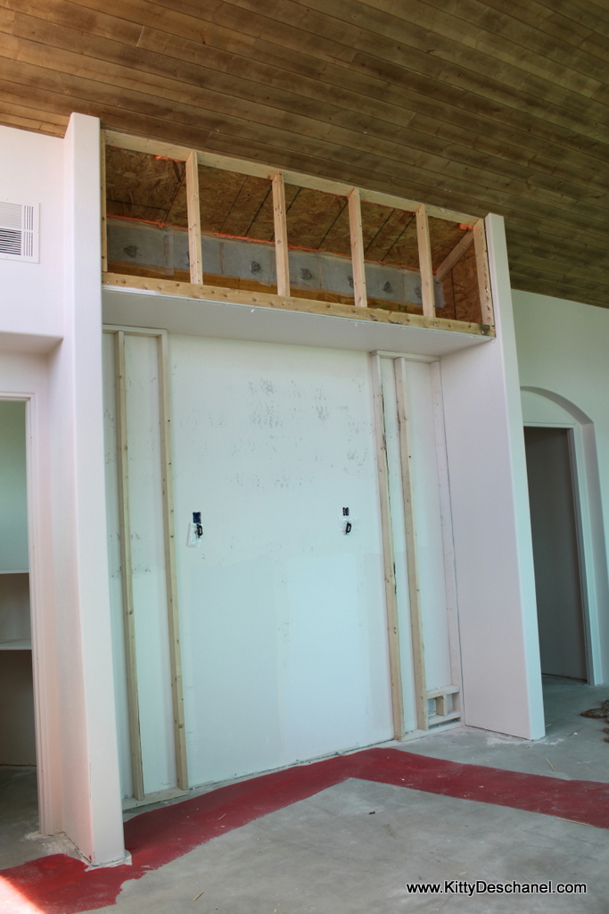 Also, you may recall that the upper portion shown here used to be drywalled and painted. It is our builder's strategy to do everything 5 times before doing it correctly, hence the drywall has been removed.