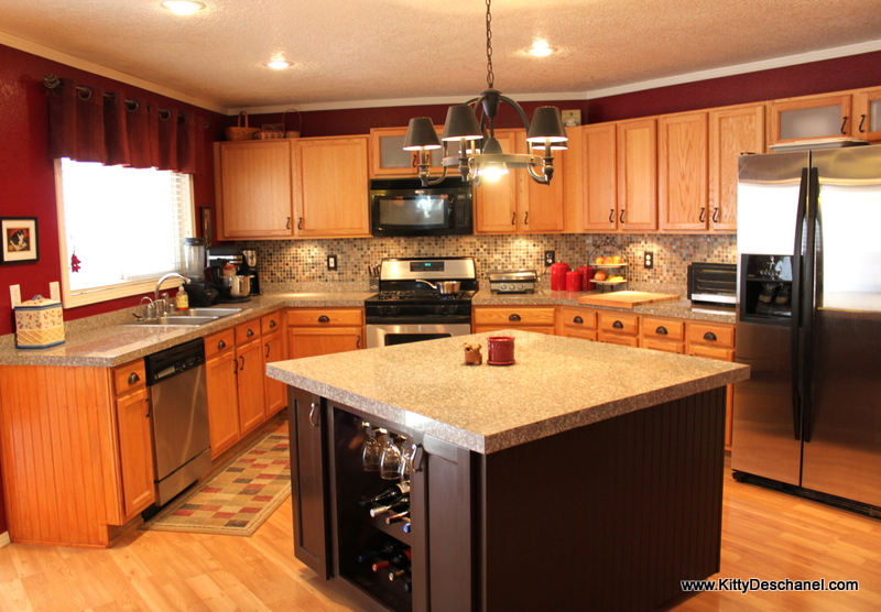 I wasn't able to find a "before" photo of our kitchen, but we're in a cookie cutter neighborhood and a duplicate floor plan is currently for sale down the street. This is pretty much what ours looked like when we moved in a decade ago. Can you believe it? Quite the transformation!