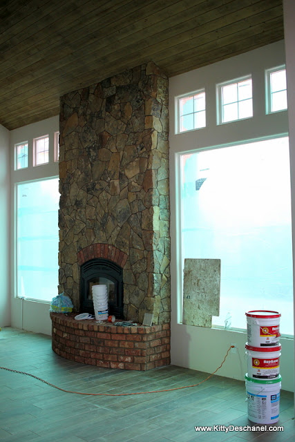 That said, we're really happy with how the floor is turning out, which is a textured wood-look tile that goes throughout most of the house.