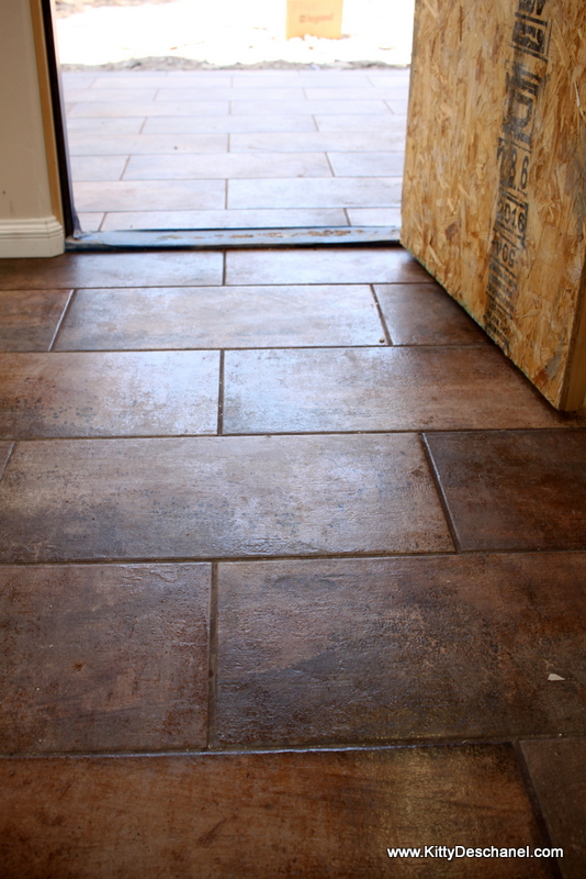 The white grout was too stark of a contrast. Sexy Nerd says not to worry because our dirty feet will quickly gunk up the shower. That's...good?