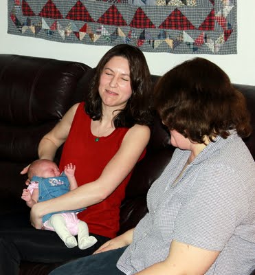 Meeting my scary niece for the first time - the feeling was mutual. That's my very sweet mother-in-law, almost certainly thinking that grandkids are not going to come from this one.