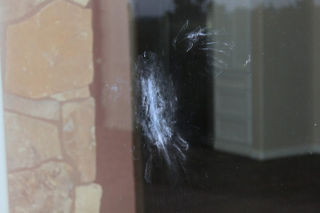 We never did find a bird, so either it was okay and flew off or, more likely considering how hard it must have walloped our window to leave that smudge, another animal came by and took advantage of the easy meal. Coyotes and bobcats are common in our new neighborhood. At a certain point, I expect they'll start hanging out in our yard, waiting for our picture windows to serve up more tasty snacks.